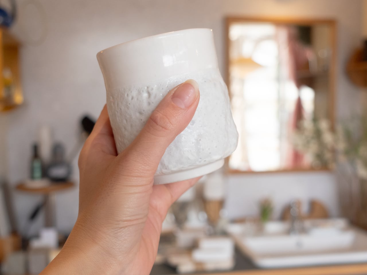 思わず手に取ってみたくなる、不思議な存在感をまとった湯呑みです。