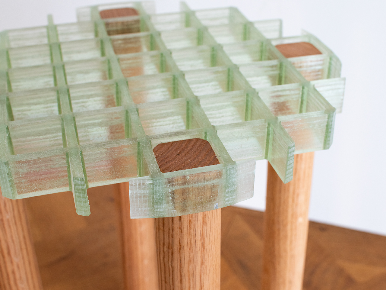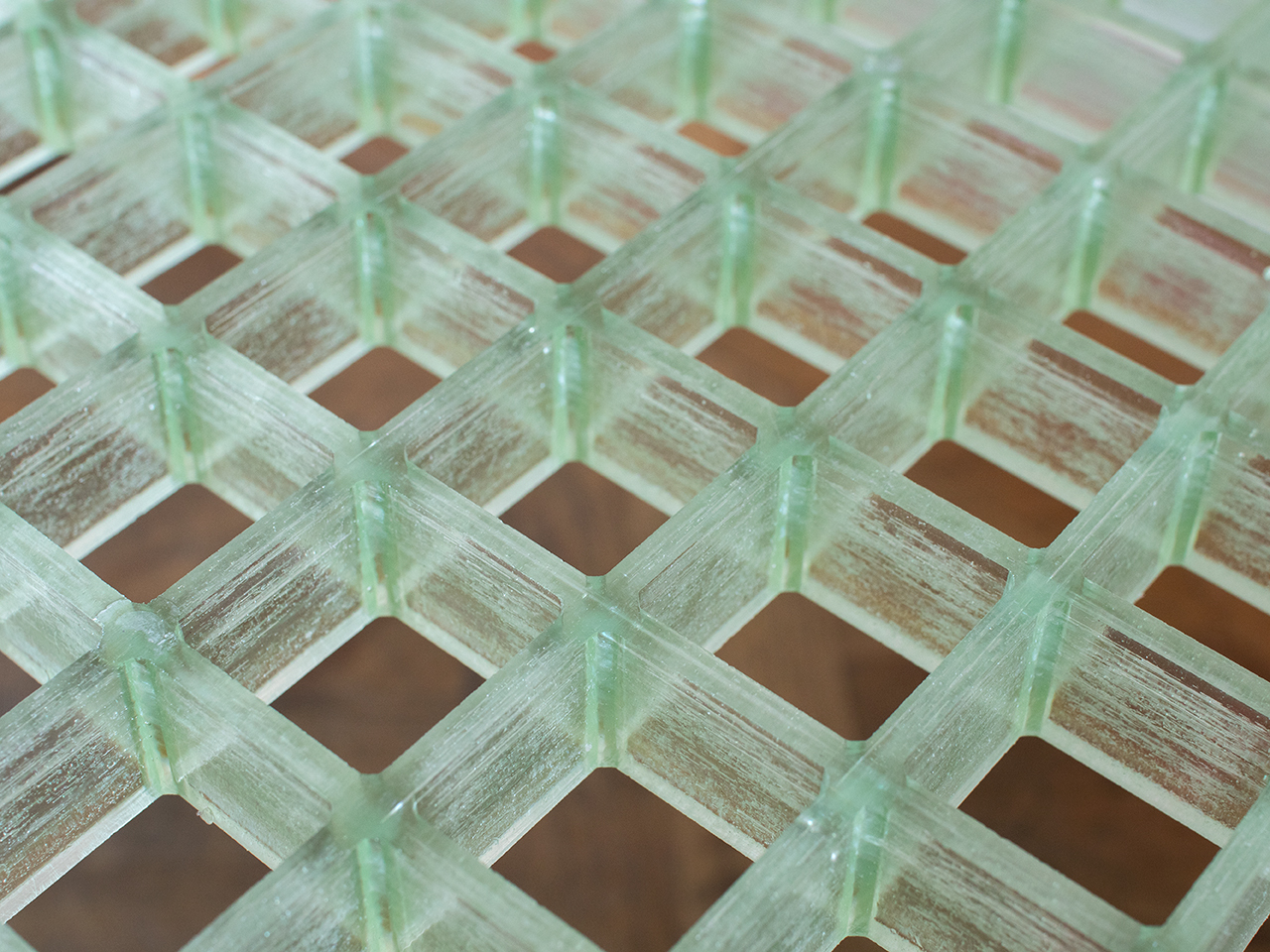 FRPグレーチングを円形にカットしたものを天板にしたプラントボード