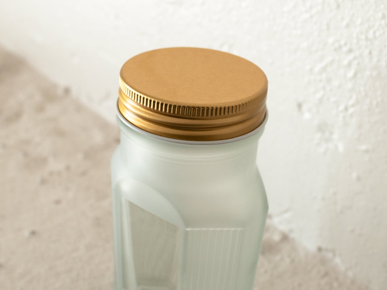 リユースのガラス容器に、もともと貼られていたラベルの跡をあえて残したプロダクト。