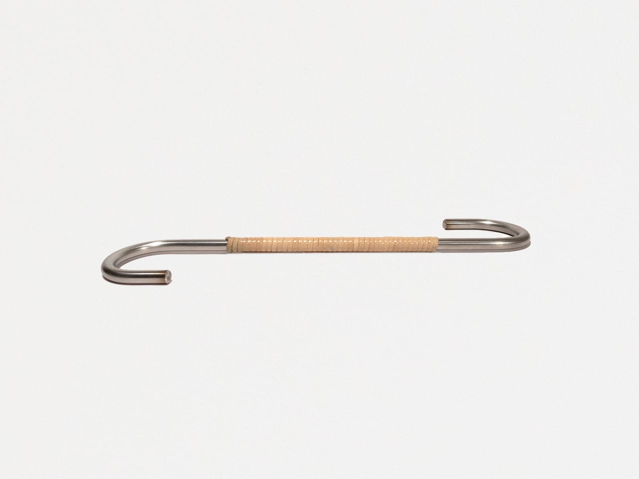 巻いたラタンには特に機能的な意味はありませんが、無機質なステンレスだけのフックより自然素材があることで柔らかい雰囲気がします。